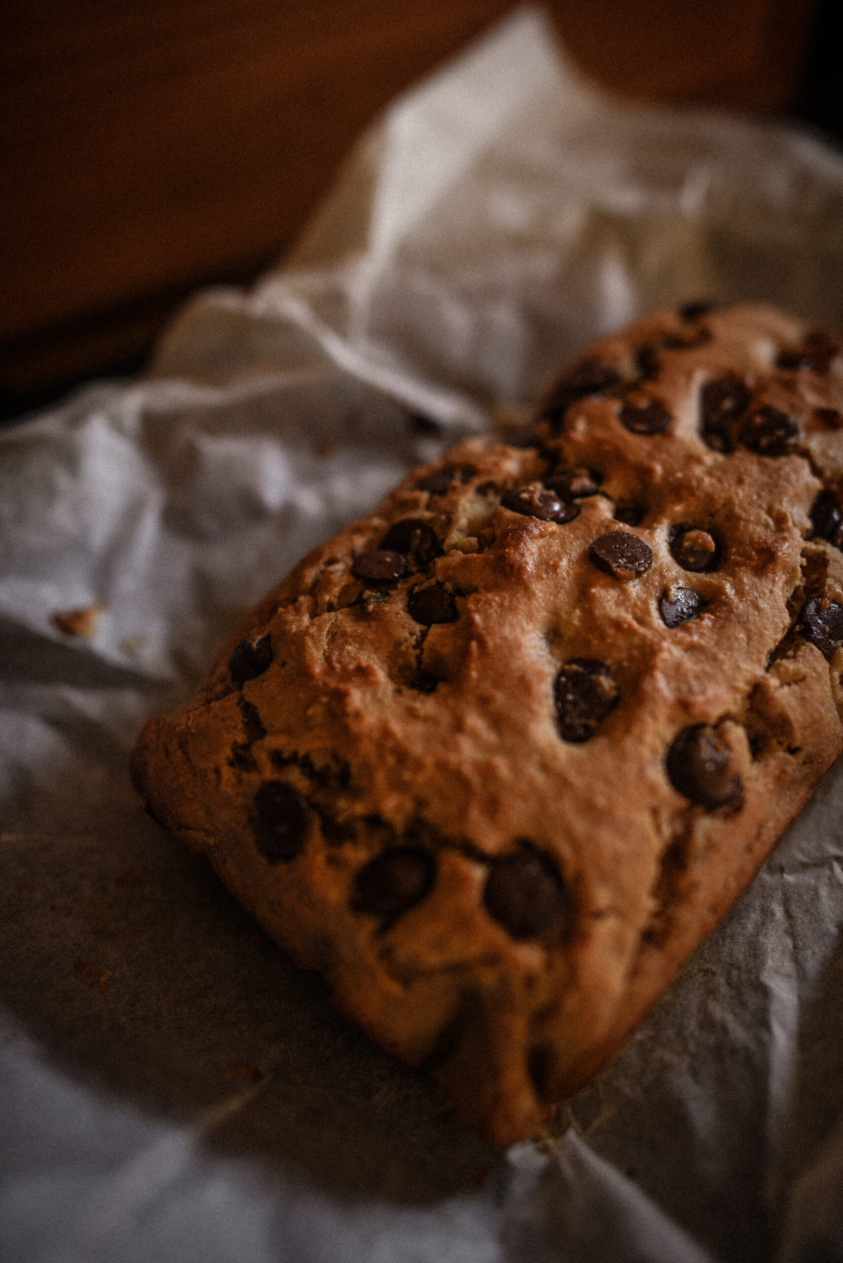 8. Tryck ner resterande chokladbitar ovanpå brödet som topping