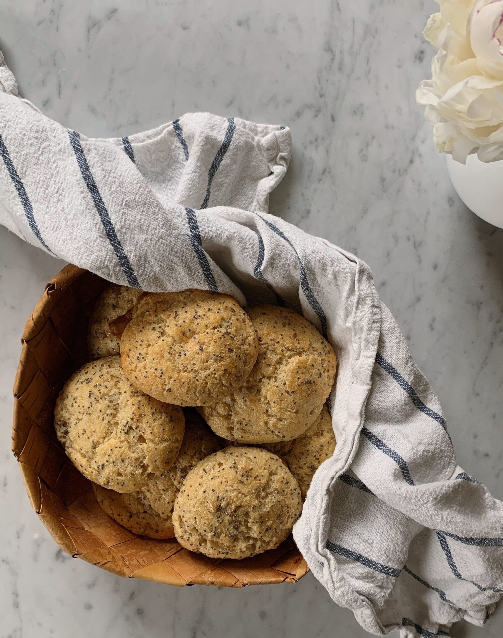 6. Blöt händerna och rulla till 8 st bollar, lägg på bakplåtspapper och pensla med uppvispat ägg och vallmofrön